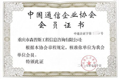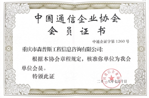 中国通信企业协会会员证书