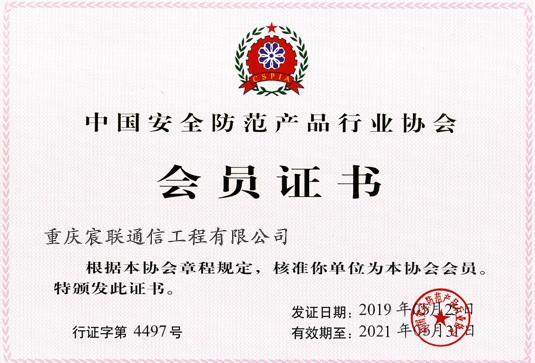 中国安全防范产品行业协会会员证书